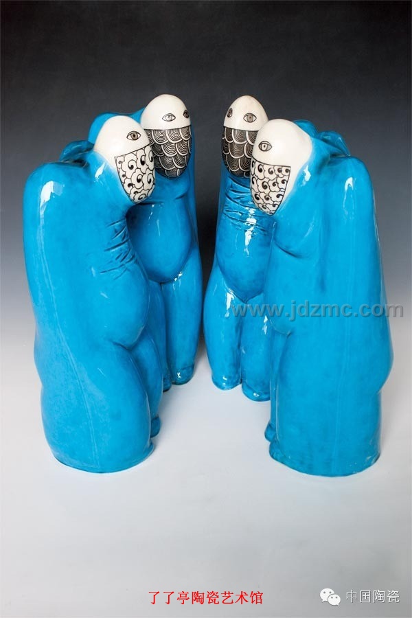 陶瓷材料雕塑在材料上的局限性,相对其他材料是滞后的,近些年在不同领域的创作者在涉足陶瓷的同时把现代雕塑观念植入陶瓷创作中,进而在陶瓷教学上也得以体现。作为雕塑系的学生大多会有些塑造的功底,同时也具备一些理论基础,再结合一些观念表达,这样创作容易出来。雕塑教研室冯都通老师在创作课中会尽量引导学生发挥其自身的特点,但凡有一点塑造能力都会让他们把自己的能力尽情展现。但有些学生的确不具备应有的造型基础,这时就不得不考虑以其他的方式,包括直接翻模,但翻模不是最终目的,最终目的仍然是要表达思考与观念,翻模仅仅让它以技术的形式出现。这样观众最终看到的是作品的观念与思想,而把用的到底是塑造技巧还是直接翻模技术忽略掉。作为当代艺术领域,纷繁多样,作为雕塑作品是不是直接翻模已不构成挑衅的命题,而更重要的是作者在利用直接翻模技术的思考与作品创作的背景观念。