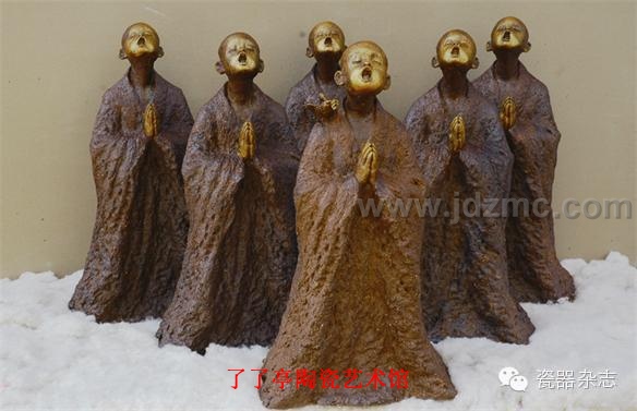 定居瓷都景德镇这么多年,他生活中每天几乎都在不间断地面对陶瓷雕塑艺术创作实践。失败了重来、旧作品和新作品的交替……周而复始的工作,并没有让刘海峰感到疲惫。做雕塑的成本原本就高,加之刘海峰又是对自己作品要求极其严厉,成功率少之又少,自然他的作品成本相比之下要高出许多。为了有更多的资金投入到雕塑作品中来,刘海峰会接一些城市雕塑的活来贴补他的雕塑创作。