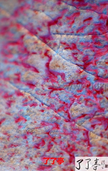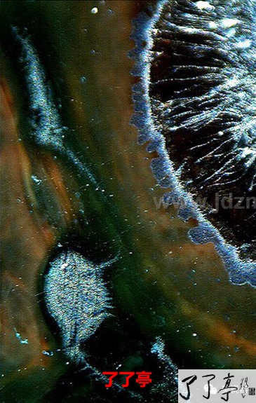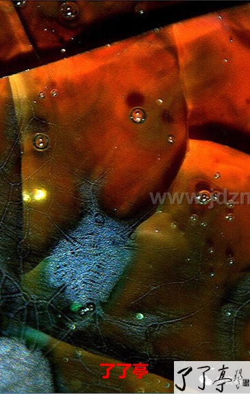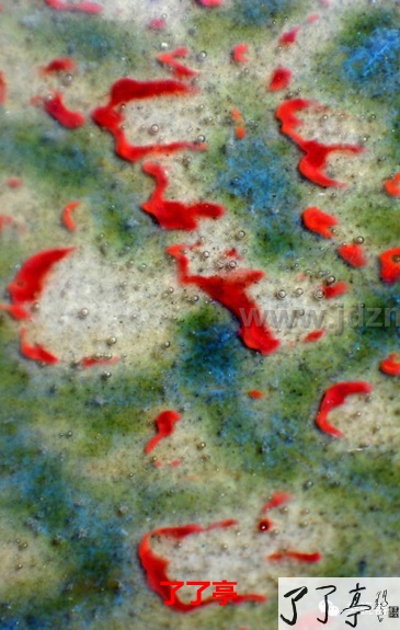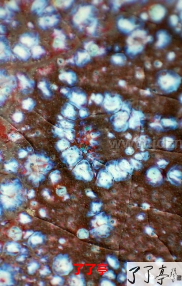 微距摄影是运用特殊的拍摄手法和专门的镜头去拍摄、记录微小物体。钧瓷微距摄影更大的特点和魅力,在于它能够捕捉一些肉眼很难观察的景象,能把钧瓷的纹理、色彩和图案放大,提高眼睛的洞察力,使欣赏者感受超常规视角下更真实、更有细节感的美。如果不是微距摄影,我们不会欣赏到钧瓷奇特的开片和绚丽的色彩,以及内部的纹络、气泡排列等等。微观钧瓷摄影探寻钧瓷的微观世界,以科普记录的形式展现给观众,并把表达摄影创作者的艺术观念有机结合起来,开拓了摄影创作新的表现对象,以及微观摄影的表现方法。