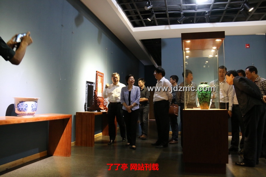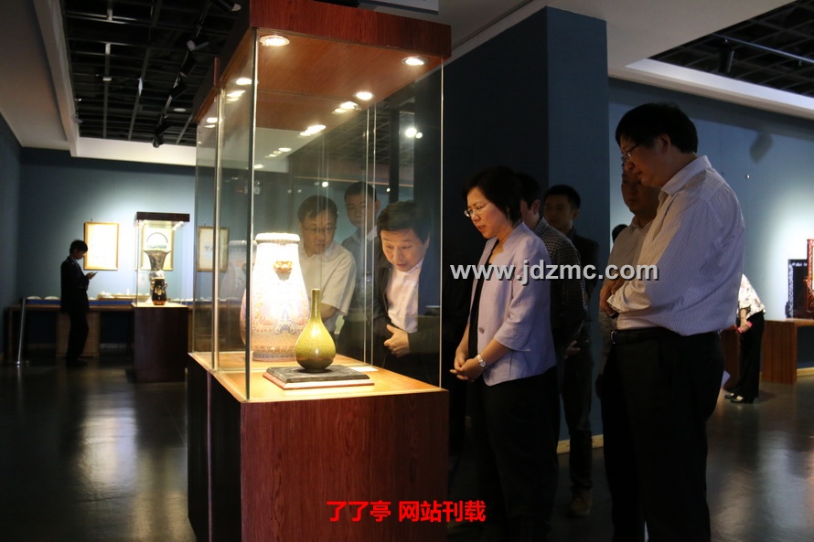 欢迎仪式结束后,市委副书记梅亦及各位市领导、藏友开始观看拍卖会预展和国家用瓷特展,梅书记仔细观看了展览的每一个板块。期间,梅书记讲到,她要拍下展厅优秀的陶瓷作品照片,让她的同学、朋友都了解到景德镇陶瓷,将景德镇陶瓷文化传播出去。