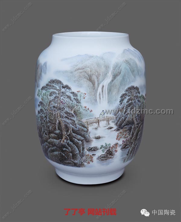 之所以结缘山水瓷画,一方面是由于其小舅与二兄皆以山水瓷画驰名,而更重要的一方面则是山水瓷画与其仁智秉性的符合。如山,稳重执着,志存高远;如水,平和清静,淡泊名利。