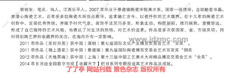 黎明东-景德镇陶瓷艺术简历(景色杂志-图片版)