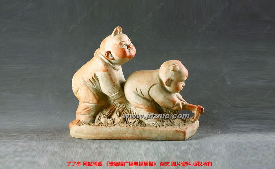 作品表现学龄前的兄弟俩由于一个人还无法拿起一把锄头使用,于是两人共拿一把锄头正在使劲地锄草。这既表现了儿童的天真活泼,又表现了他们的勤劳和智慧,因而给人一种诙谐、可爱、向上的形象。