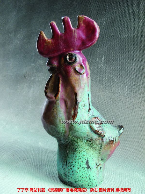 一个小鸡公,毛发还未长全,屁股还露在外面,但它趾高气扬,不知天高地厚,目空一切。其实还很幼稚,还是“初出茅庐”。 Babe: in 1985, material: porcelain clay, size: 33cm×17.5cm