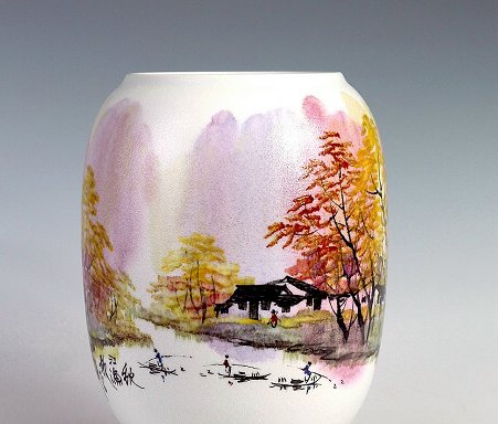 刘伟彩瓷罩紫云,画图天然窑变新。
