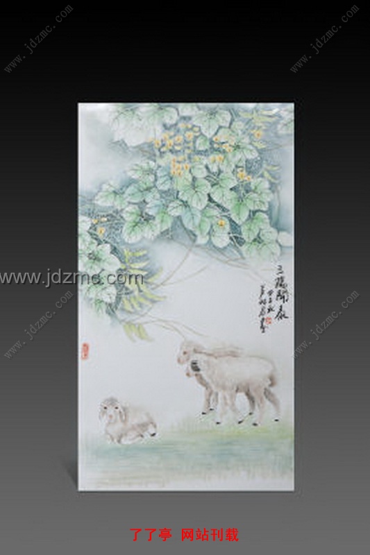 昭君喜画花鸟,素材多取自日常所见实景。她的画作之中,少了姹紫嫣红的艳丽之色,多用清浅雅丽的笔触,一笔一绘间,小女儿情态尽显。在新彩瓷板《蝶恋花》中,画面构图简洁,淡绿的花叶下,垂坠着饱满的花朵,两只彩蝶,似是闻到了花香,翩翩飞来。在用色上,昭君选择用浅淡的色彩来表现花叶,又用相对鲜艳的颜色来描绘蝴蝶,“蝶”与“花”,一深一浅,一动一静,画面立显生动。而昭君亦将情蕴景中,使情景相融,心旷神怡。