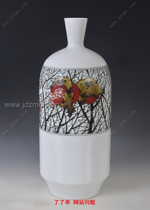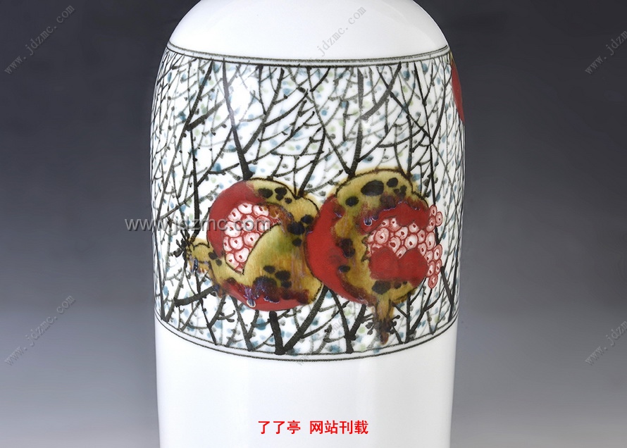 作品《硕果》在工艺上,将景德镇的传统颜色釉工艺进行绘画创作,经过1300度的高温之后,呈现出生动的肌理效果。