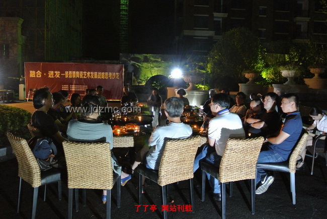 处暑迎秋凉,夜话新常态。8月23日晚,“融合·迸发——景德镇陶瓷艺术发展战略思考沙龙”在紫晶山庄举行,邀请了以景德镇市文化艺术馆为主的近20位艺术家齐聚一堂,共同探讨经济新常态下,景德镇陶瓷艺术家如何实现不同地域、不同风格艺术形式的资源共享、优势互补、紧密协作,从而更好地融合发展,迸发一加一大于二的能量,为推进景德镇陶瓷艺术的繁荣发挥团体力量。