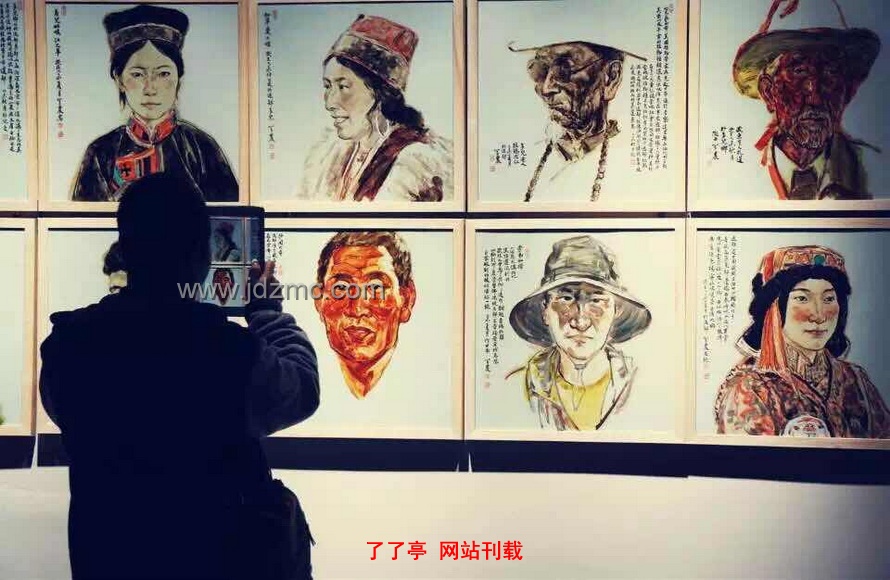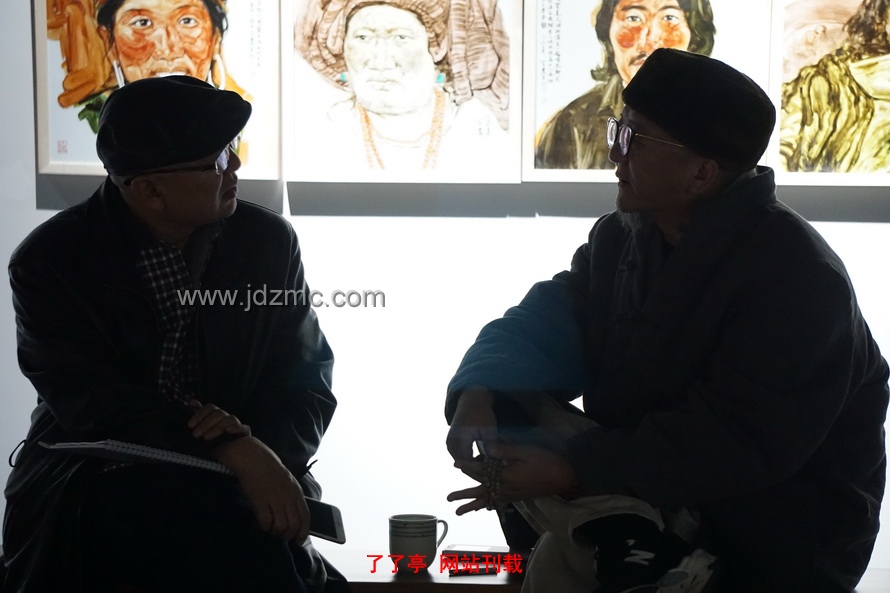 镜头首先切到了何笠农老师的展览区域,记得他说:“我和草原有个约定,每年春节都要和老婆儿子一起回老家甘肃陇西,和家人、亲朋、同学欢聚畅饮之后,去甘南藏区采风,我爱甘南藏区的风土人情”。果然就是这份纯粹的情感,带来了此次35件进藏实地写生作品,一路艰辛,却难不倒这陇西汉子,更掩不住那开怀赤诚的真性情。