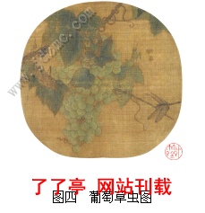 图二十三与图二十四所示,这两幅作品在画面构图上选用了折枝的方式,给人一种精巧而意犹未尽的感觉,几只昆虫围绕着果实飞舞,为画面增加了几分生活的情趣。