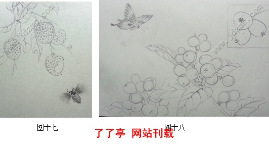 其次,去自然中进行大量的写生,真正了解蔬果以及草虫的生长特点和习性,将书本的知识融会贯通,收集创作素材,深入生活寻找和积累内心对生活、对艺术的感受,如图十七、图十八。