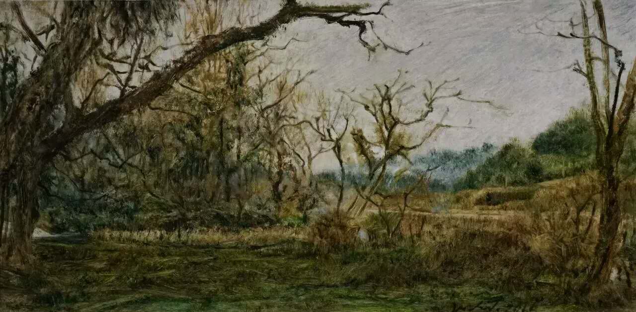 此次画展,共展出王协军老师近几年来创作的30余件写生作品,这些以田园、林木和庄稼地为主体形象的油画,是当代城市现在很少能体验到的一种审美感受;而“常态”,则是他所回归的生活正常状态,其中也包括绘画的一种状态。从他的作品中不难看出,王协军从一开始就放弃了对形的具体阐述,转而关注于画的线条、色块、气韵和神等等所构建的序列,勾勒描绘那种能量,引导出那种同频的气氛,潜意识地讲述一种美的意境,一种被我们称之为常态的所在。