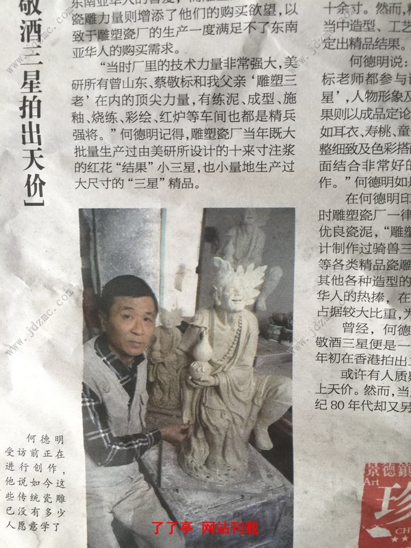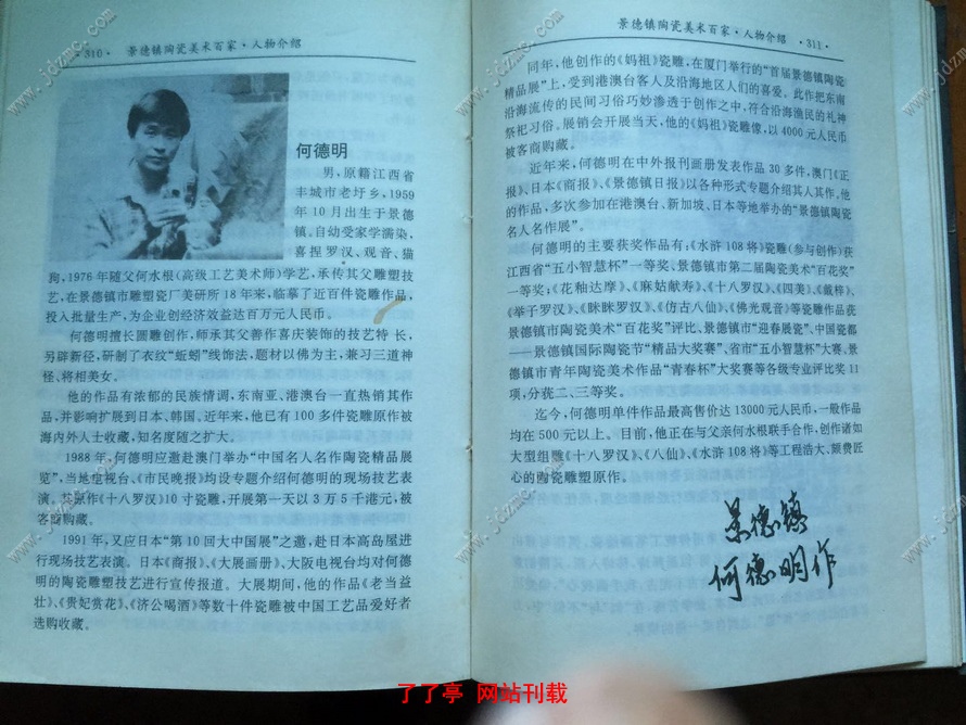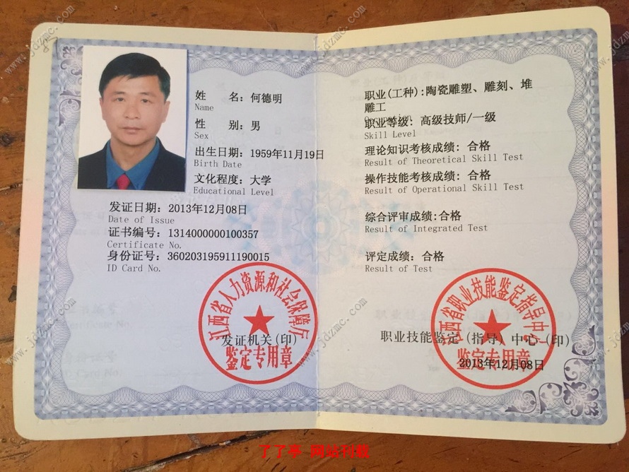 本人现在是雕塑瓷厂启“何水根”、“曾山东”、“刘远长”之后的技术骨干、雕塑名家之一。