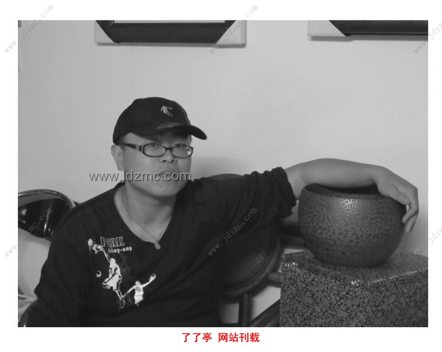 李申盛,1980年生,毕业于中国地质大学。江西省高技能陶瓷艺术家协会常务理事,江西省高级技师,景德镇市高级陶瓷美术师,江西省工艺美术师一级。2002年,创办了了亭网站。十多年来,了了亭网站免费为陶瓷艺术工作的艺术家进行宣传、推介,为景德镇陶瓷艺术在全国及全世界的推广介绍作出了重要贡献,得到陶瓷艺术界广泛认同。2008年,投入高温颜色釉的研究和创作,王锡良、戴荣华等大师给予他很多关注指导,艺术和收藏界朋友的鼓励肯定更使他自信、干劲十足。这几年,和夫人米承燕共同奋斗,推出了仿铜、岩画、兰彩、玳瑁、牡丹、深海、桑田系列高温窑变茶器和各式容器。他的高温颜色釉作品已经得到海内外收藏群体的关注。