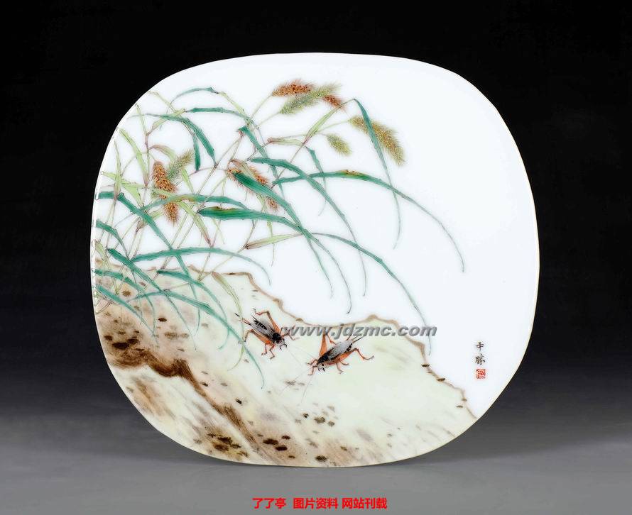 毕胜,粉彩花卉草虫瓷板-尺寸30+26cm