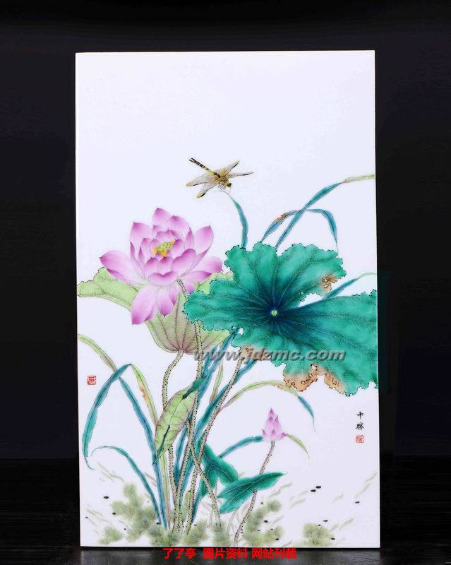 毕胜,粉彩花卉草虫瓷板-尺寸30+26cm
