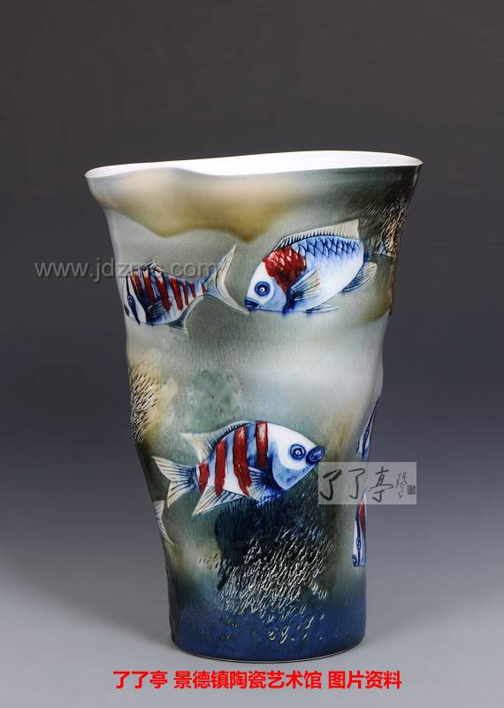 展示作品:议价 创作艺术家:胡景文,江西省工艺美术大师 教授 作品的名称:《海洋》高温颜色釉 瓷瓶 配备的鉴定资料:作品证书 作者合影 是否有残次瑕疵:无瑕疵 作品所在地:景德镇 了了亭