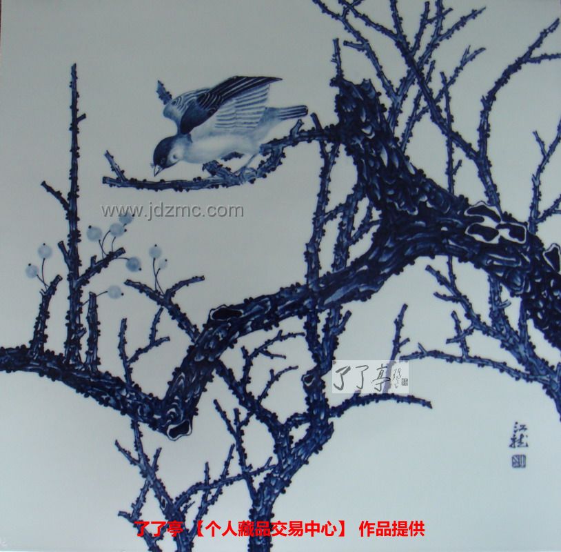 创作艺术家:江龙 景德镇市高级陶瓷美术师 作品的名称:青花《花鸟系列》 作品的大小:纯内径57*57cm瓷板 配备的鉴定资料:作品证书 作者合影 是否有残次瑕疵:无瑕疵 作品所在地:已送至 景德镇了了亭