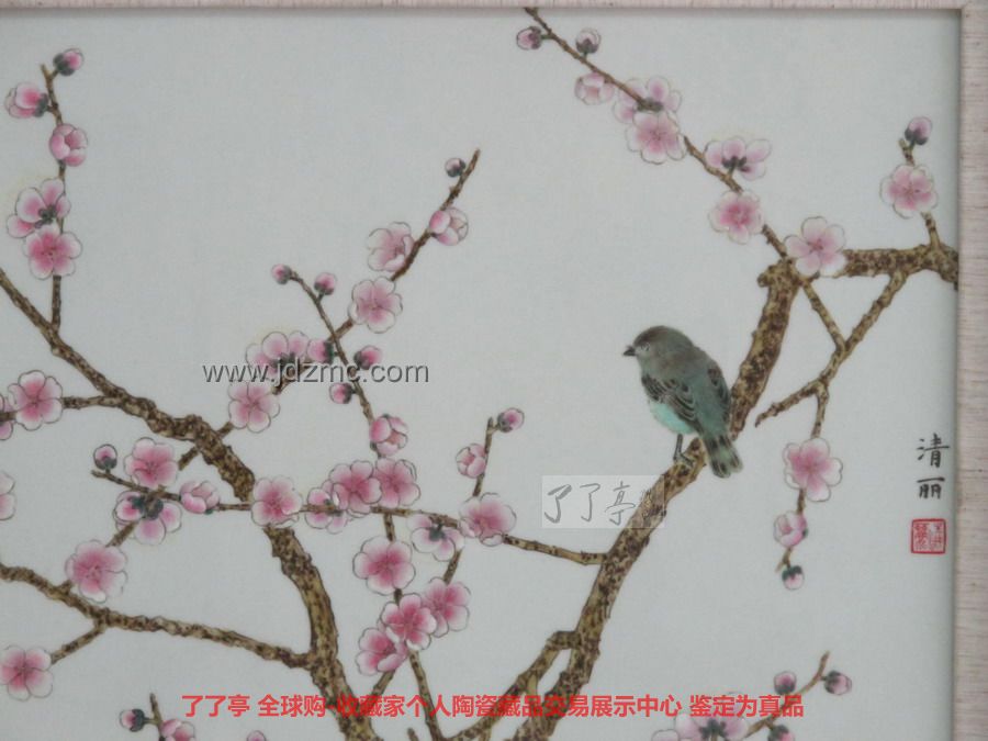 创作艺术家:王清丽 景德镇陶瓷学院陶瓷美术学院讲师 作品的名称:粉彩《暗香》 作品的大小:瓷板长45cm 宽度:35cm 框架:60*49cm 配备的鉴定资料:作品证书 作者合影 是否有残次瑕疵:无瑕疵 作品所在地:已送至 景德镇了了亭
