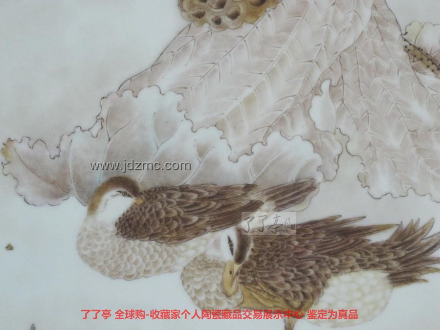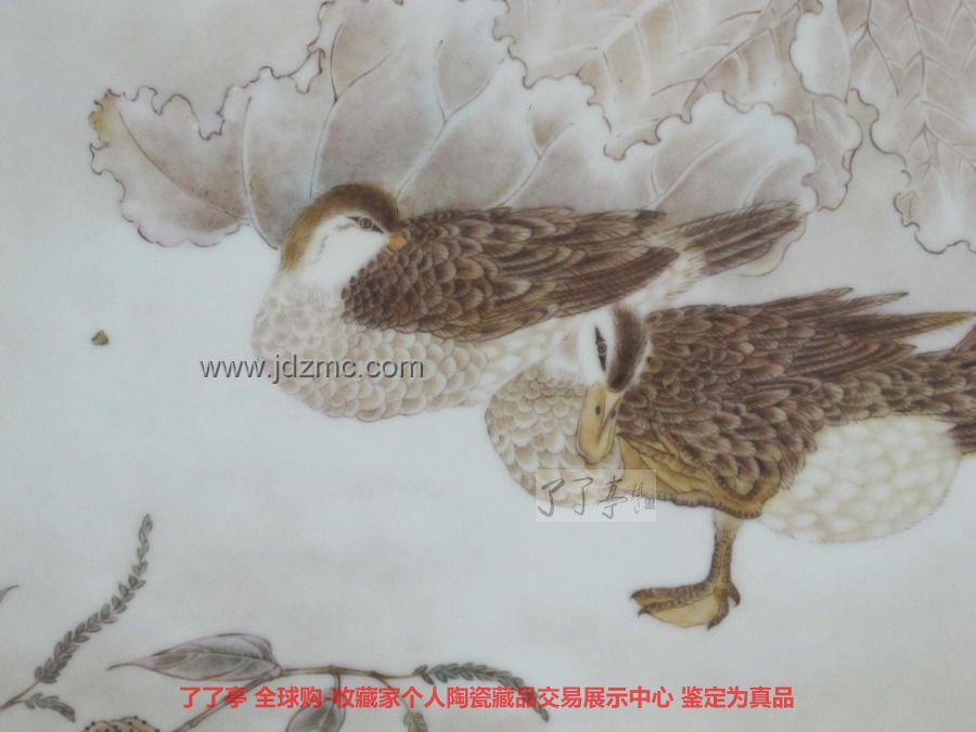 创作艺术家:王清丽 景德镇陶瓷学院陶瓷美术学院讲师 作品的名称:粉彩《雏鸭声声》 作品的大小:瓷板长41cm 宽度:41cm 框架:56.5*56cm 配备的鉴定资料:作品证书 作者合影 是否有残次瑕疵:无瑕疵 作品所在地:已送至 景德镇了了亭