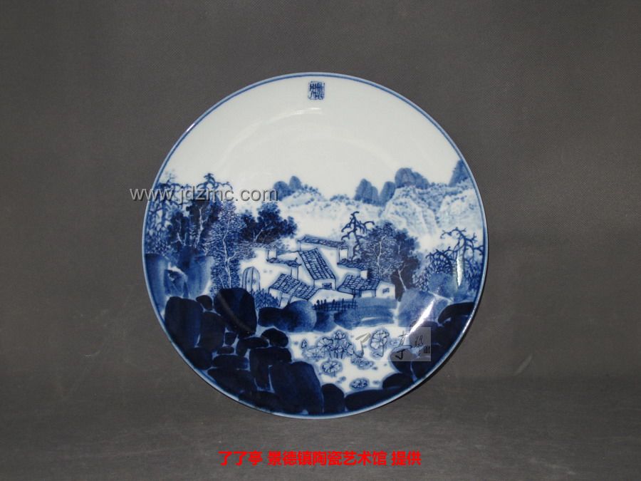 创作艺术家:杨杰 江西省高级工艺美术师 作品的名称:青花《山居图》 作品的大小:瓷盘 直径:12寸 配备的鉴定资料:作品证书 作者合影 是否有残次瑕疵:无瑕疵 作品所在地: 景德镇