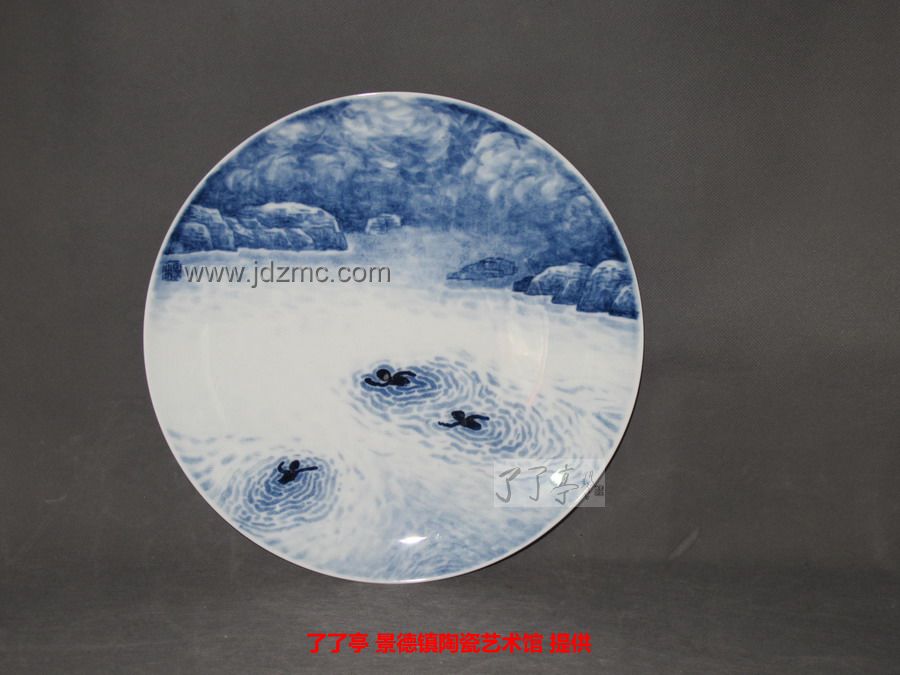 艺术家:杨杰 江西省高级工艺美术师 作品的名称:青花《泳》 作品的大小:瓷盘 直径:12寸 配备的鉴定资料:作品证书 作者合影 是否有残次瑕疵:无瑕疵 作品所在地: 景德镇
