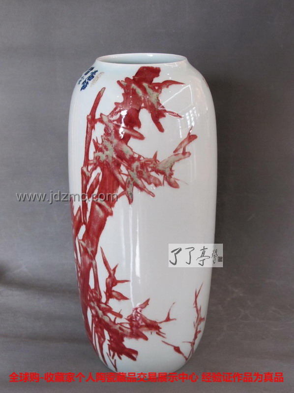 创作艺术家:冯少胜 江西省高级工艺美术师 作品的名称: 青花釉里红《竹报平安节节高》 作品的大小:200件 配备的鉴定资料:作品证书 是否有残次瑕疵:无瑕疵 作品所在地:景德镇
