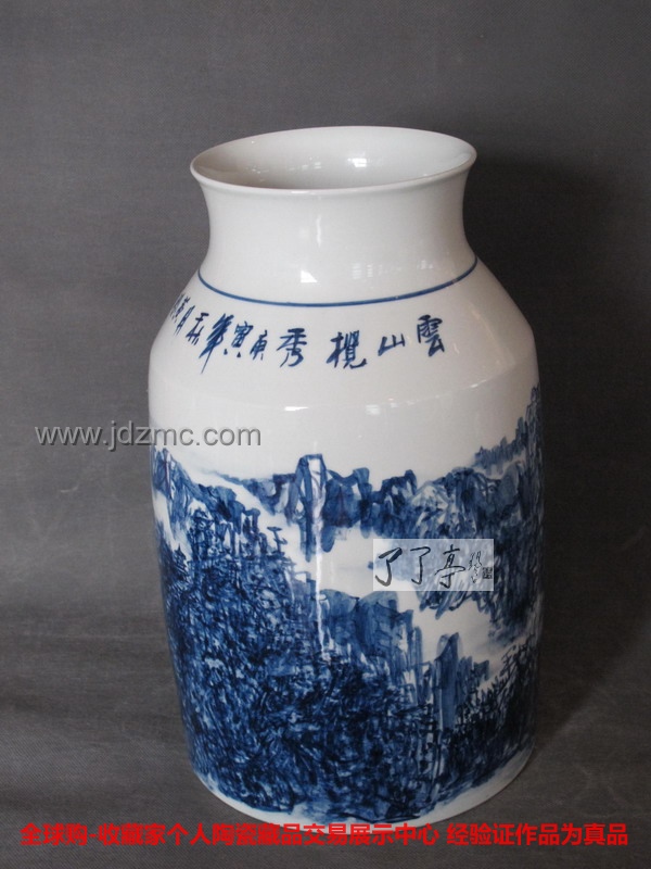 创作艺术家:黄玲 景德镇市高级工艺美术师 作品的名称:青花山水《云山览胜》 作品的大小:150件 配备的鉴定资料:作品证书 是否有残次瑕疵:无瑕疵 作品所在地:景德镇