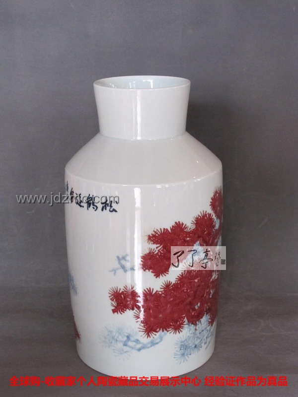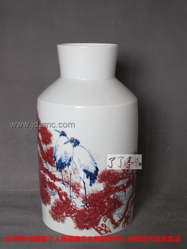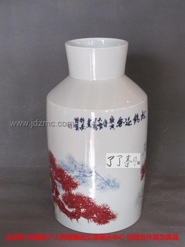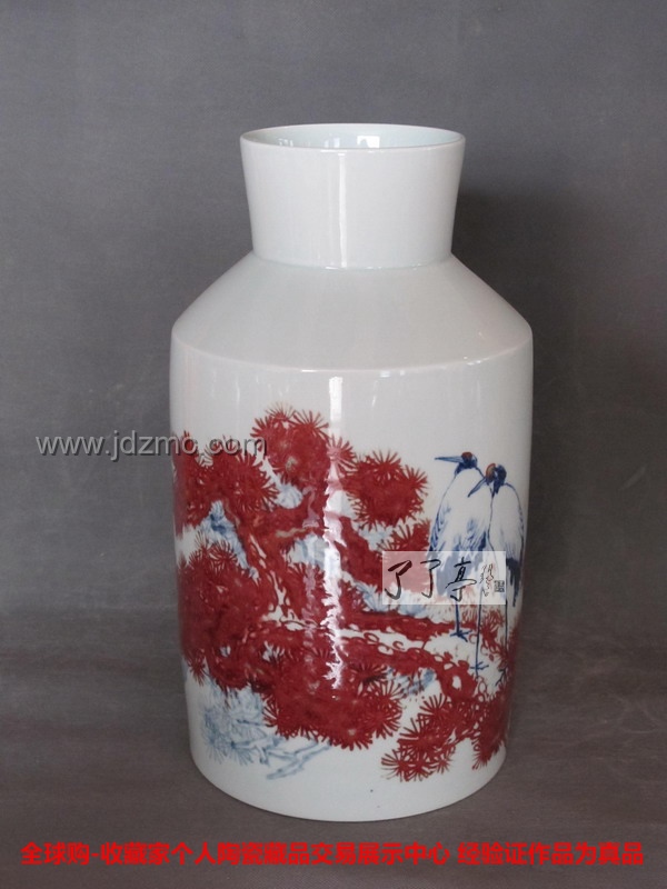 创作艺术家:吕歌 景德镇市高级陶瓷工艺美术师 作品的名称:青花釉里红《松鹤延年》瓷瓶 作品的大小:150件 开口13cm 高40cm 宽21cm配备的鉴定资料:作品证书 是否有残次瑕疵:无瑕疵 作品所在地:景德镇