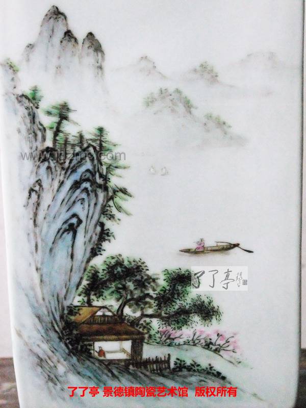 创作艺术家:李林,别名许聚霖 江西省工艺美术师 作品的名称:《江山笛声》粉彩四方镶器 作品的大小:100件 配备的鉴定资料:作品证书 作者合影 是否有残次瑕疵:无瑕疵 作品所在地:景德镇 了了亭