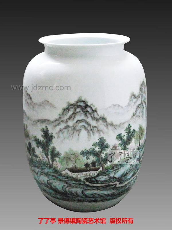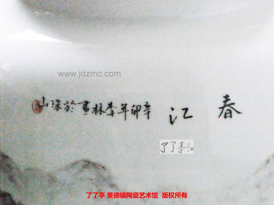 创作艺术家:李林,别名许聚霖 江西省工艺美术师 作品的名称:《春江》粉彩山水瓶 作品的大小:200件 配备的鉴定资料:作品证书 作者合影 是否有残次瑕疵:无瑕疵 作品所在地:景德镇 了了亭