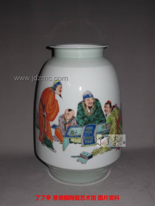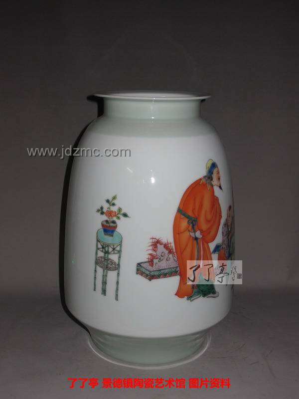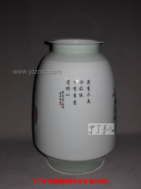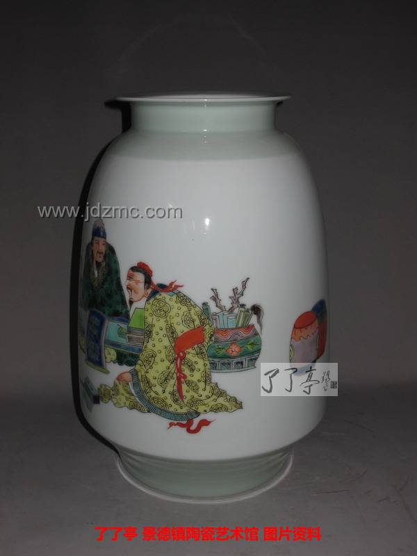 创作艺术家:李林,别名许聚霖 江西省工艺美术师 作品的名称:《征客》古彩人物瓶 作品的大小:150件 配备的鉴定资料:作品证书 作者合影 是否有残次瑕疵:无瑕疵 作品所在地:景德镇 了了亭