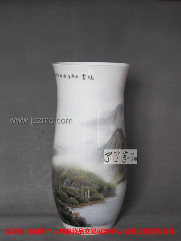 创作艺术家:谢婷 景德镇市高级工艺美术师 作品的名称:釉上彩《晓雾》 作品的大小:150件 开口径:20cm 高44cm 宽:20cm 配备的鉴定资料:作品证书 是否有残次瑕疵:无瑕疵 作品所在地:景德镇