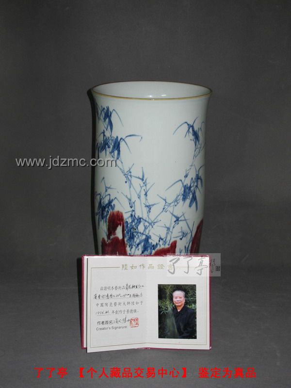 创作艺术家:陆如 作品的名称:《兰香竹清图》青花釉里红瓷瓶 作品的大小:150件 配备的鉴定资料:作品证书 是否有残次瑕疵:无瑕疵 煤窑烧制 作品所在地:景德镇