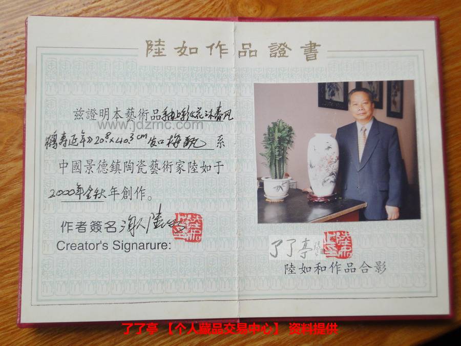 陆如 《花沐春风 鹤寿延年》 青花 规格150件 鉴定资料:作品证书 是否有残次瑕疵:无瑕疵 作品所在地: 省外 如需购买或委托咨询,索取全景大图请联系,栏目资源联系人:李申盛 电话:15079899527 email:33605414@qq.com QQ:33605414 备用Email:jdzmc@vip.163.com 委托须知:http://www.jdzmc.com/Article/Class9/wen/2011/06/07/19658.html
