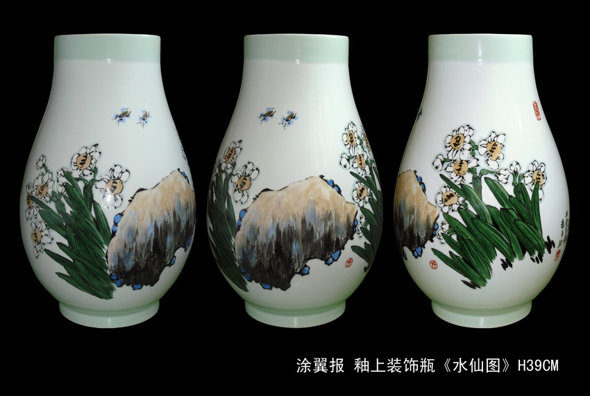 创作艺术家:涂翼报,中国陶瓷艺术大师 作品的名称:《水仙图》瓷瓶 高度39CM 配备的鉴定资料:无 是否有残次瑕疵:无瑕疵 作品所在地:省外