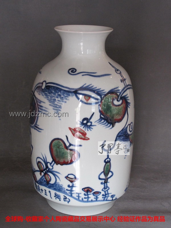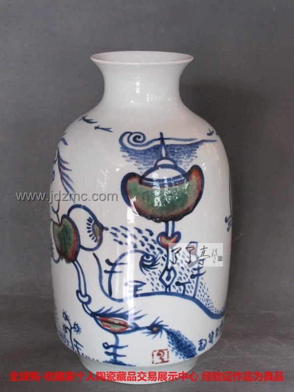 创作艺术家:方云 国家二级美术师 作品的名称: 青花釉里红《即兴生命》 作品的大小:200件 开口12.5cm 高41.5cm 宽21cm配备的鉴定资料:作品证书 是否有残次瑕疵:无瑕疵 作品所在地:景德镇