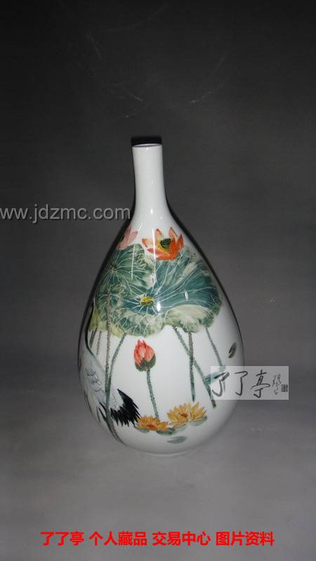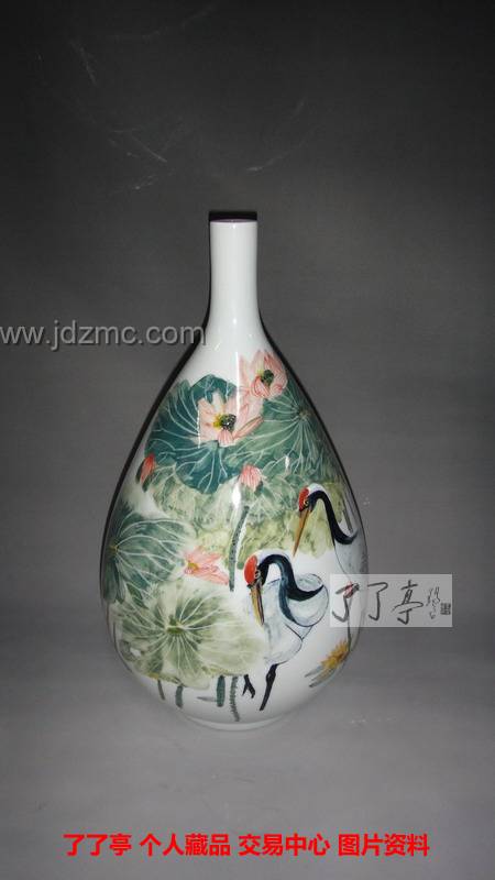 创作艺术家:刘珊涞 教授 作品的名称:《仙鹤》釉下彩瓷瓶 作品的大小:150件 纯瓷板内径 配备的鉴定资料:作品证书 是否有残次瑕疵:无瑕疵 作品所在地:景德镇