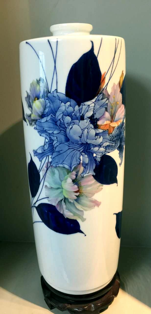 张学文教授是一个有独创精神的瓷画艺术家,没有因袭前辈制作瓷画的规矩和模式,走出了一条属于自已的艺术之路,在任何地方看到他的作品,您总能一眼确认!这在景德镇陶瓷艺术界是非常不容易的,也是非常难得的。一千多年来,瓷画匠们似乎都在跟着官窑走,仿得比官窑更官窑便是至高无上、众人仰慕、追捧。直到官窑倾倒,民国时间,才有了珠山八友等出类拔萃的优良民间陶瓷艺术家。改装开放,又涌现了一批新时代的新画家,他们张杨个性,追求自我,大胆开拓、探求,张学文教授是其中颇有成就、独树一帜的艺术家,在您欣赏他那些色彩斑斓的花朵,沉着典雅的青花,美仑美奂的作品,您能享受到一种清风飘爽、耳目一新的感觉.            陈也君/文170722