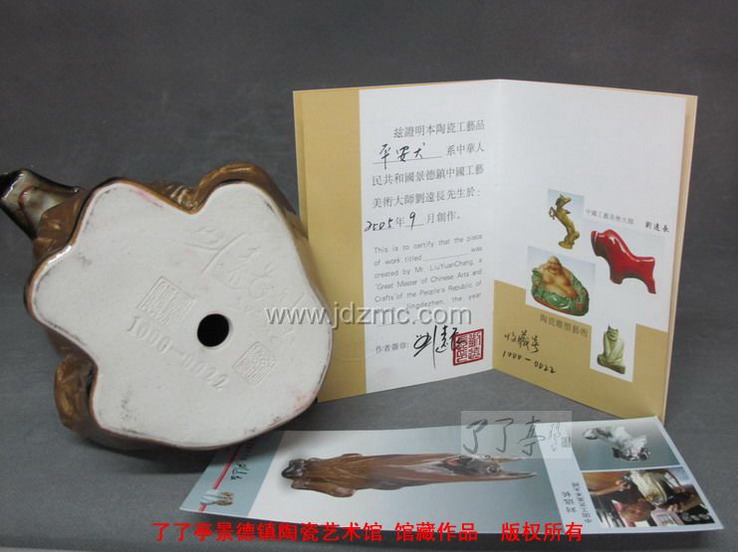 刘远长大师与了了亭有十多年的友谊.我1996年第一次踏上景德镇就下意识地要去看一看刘大师,他实在太有名了,要说古今陶瓷界最有名的,莫过于刘远长了。一个"哈哈罗汉",跑遍了全世界各大洲,但凡有中国人的地方,您就可从看到这位笑容可掬的罗汉,给多少人带去了欢乐和愉悦.刘远长可以说是家喻户晓.这是刘大师一张永不变色的名片。