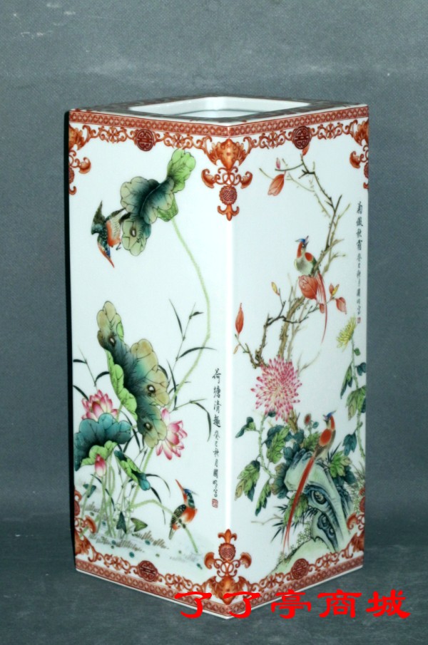 《四季花鸟》四方镶器.粉彩.徐国明(江西省高级工艺美术师)