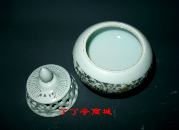 规格:高. 12.5cm. 肚径. 10.5cm 徐国华,男,1975年生于景德镇,15岁师从景德镇工艺美术大师焦健懿。在1995年时值20岁时,师傅焦健懿劝他说,要想在高手如林的景德镇艺术圈中有所作为,必须有旗帜鲜明的艺术特色。徐国华对师傅的话谨记在心,开始尝试在陶瓷上搞微书微画。说一起来容易,做起来却十分艰难,他一开始根本无从下手。因为一般的笔和颜料根本画不出微小的图案。徐国华陷入了深深地思索,他开始尝试用野鸡毛在蚕豆上画,他自己研制的野鸡毛笔尖上只有一根毛,是在显微镜下制作的。画的时候全凭这一根毛,旁边的毛则起支撑作用。他这样摸索了三年左右,然后又在更小的花生米上练习了3年,最后他又在更小的大米上练习,他在一粒大米上一开始能写两个字,画一个人,慢慢地写三十个字,画三个人,而且完全不用放大镜。时间到了2005年,徐国华终于练成了绝世功夫,他不用放大镜,全凭意念感觉能在一粒大米上写八十个字,画十个人!而且还能蒙住双眼,在大米上刻字!十年磨一剑,徐国华用常人难以想象的意志和毅力,把微字和微画运用到了陶瓷上,他取材广泛,无论是人物,山水,花鸟,还是走兽,图案,草虫等,均能画到极其精致小巧,画面微小却不失真,真是难能可贵!