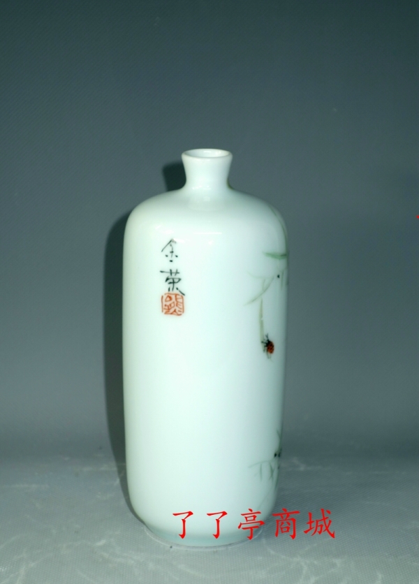 熊金荣专攻釉上彩,工笔人物及花鸟是他的专长,花鸟画十分工细,无论细部查看或远处综观,都不由地称赞他的功力,他画的仙鹤的羽毛,委实漂亮,逼真、洒脱。笔力的坚实,利落,展示了他的瓷绘功力,设色的和谐、流畅和协调,使他画吉祥动物均雍容、华贵、艳丽。在人物的造型上,他一直努力形成自己的绘画语言,形成自己独立风格。现今他这类绘画,加强了整体布局审美,无论在他擅长的图案装饰配制,还是他善画的背景布置上,都有相当程度的改进。我欣喜地看到和体会到熊金荣的变化!