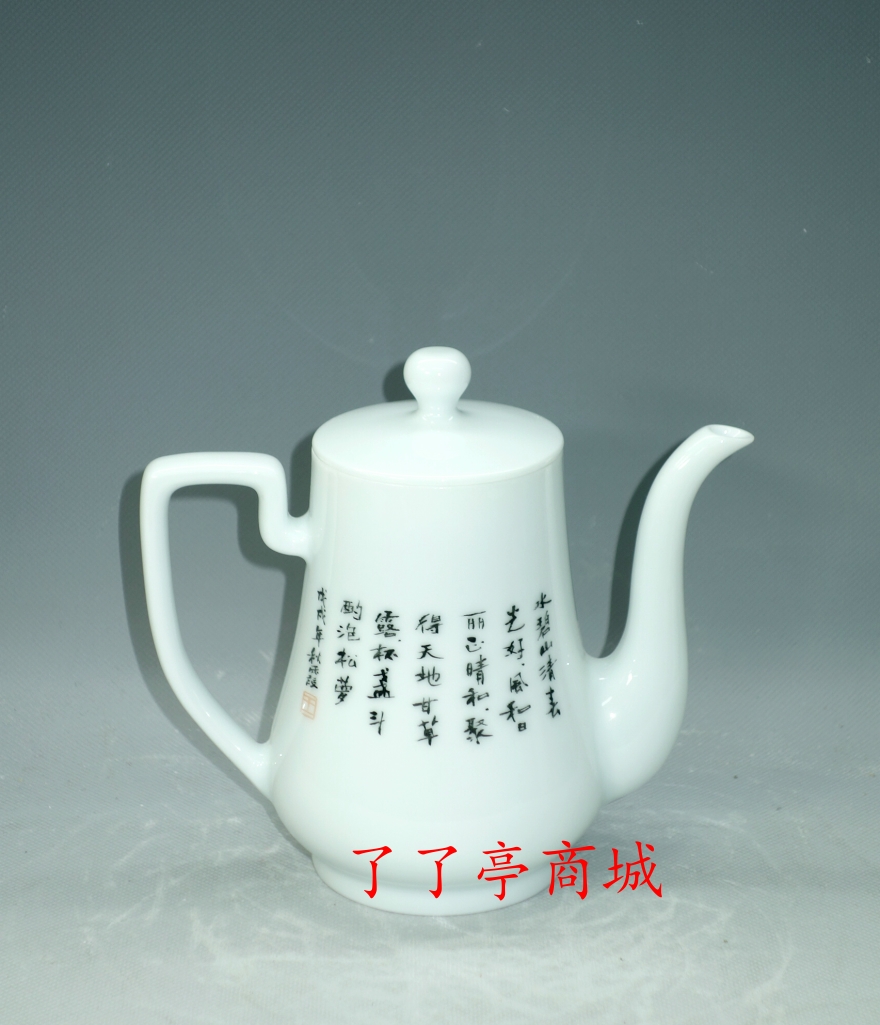 作品优在何处,好在那方,我经常让我的朋友们对比:一把王秋霞的壶,一把任何别的壶,紧靠在一起,咱们先不谈王秋霞绘画的高雅、高洁。只请你目视壶的表面,王秋霞的壶:白里隐隐地透着淡淡的青色,白得圆润、白得含蓄、白得尊贵、白得与众不同!用手抚摸,温润如脂。把一批各式小壶放在一起,你可以毫不费力地立刻找到秋霞的壶。不用评说,作品的尊贵之处显而易见。