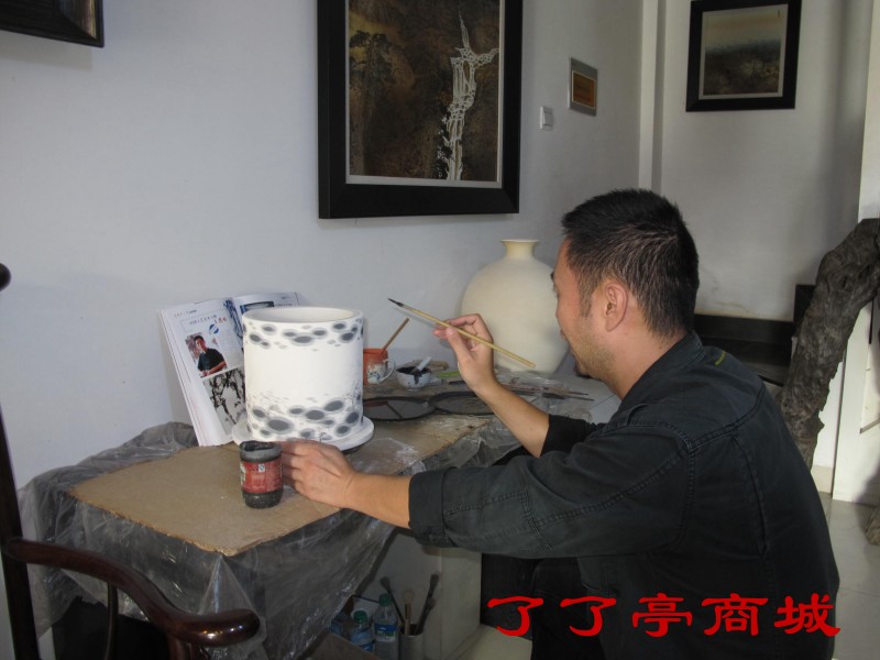 身处景德镇艺术市场,苦苦地认真地用我这点精力、信息、条件、机遇去寻觅着那些真正追求艺术的艺术家,寻觅着那些有志向、有才华、品性好的年青人。这是我们的重要功课。其实,一个商家能做好的艺术家是有限的,商家必须了解艺术家,要品(质)性(格)相投,志趣相近,你才能比较深入地了解和理解对方,只有这样。才能合作起来。“了了亭”作为商家应为艺术家作好宣传,让收藏家了解艺术家,有了这种有机的互信和互动才能做好市场.杨杰是我们的邻居,谈吐相投,便你来我往。我欣赏他对艺术的专研,视同生命般的热爱和全身心的投入。景德镇多的是“艺术家”,少的也是“艺术家”。但凡我们遇见一个像杨杰这样的艺术家,我们都会去认真积极的了解他。不管是否经纪他的作品,我们会尊重他、推崇他、宣传他。