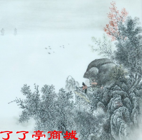 我拿他第一件作品是一块20cmx12cm的超薄瓷扳,因为我喜欢亚光瓷,建议他釆用亚光瓷板,他也很赞同。那一块瓷板画的是墨彩,江南山水、清秀、错落有致,有姿有势,很耐看,拿在手里真有点爱不释手。记得那块可爱的小瓷板在我的橱窗里只放了二天,第三天就被一个专业制作红木傢俱的朋友看见了,硬给买走了,真还有点心痛。我的朋友圈很快就认同了汪则东,购买了他精巧的小作品。汪则东认认真真地走进了市场.。我的朋友分布在大江南北,他的作品也走到东西南北。我经常向他反馈我的收藏圈内的朋友们对他作品的意见和建议,他很尊重这些宝贵的关注和爱护。