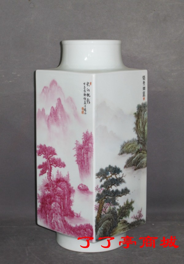 不久前. 余劲松参加首届“中国瓷再引世界风”大奖赛,一个粉彩青绿山水六条屏得了金奖,一个粉彩和玛瑙红200件四方镶器得了银奖。他很高兴,我也为他高兴,他完成了一个过渡,把他的青绿山水画作提到更高水平。他现在信心心满满,计划着下一步的创作。