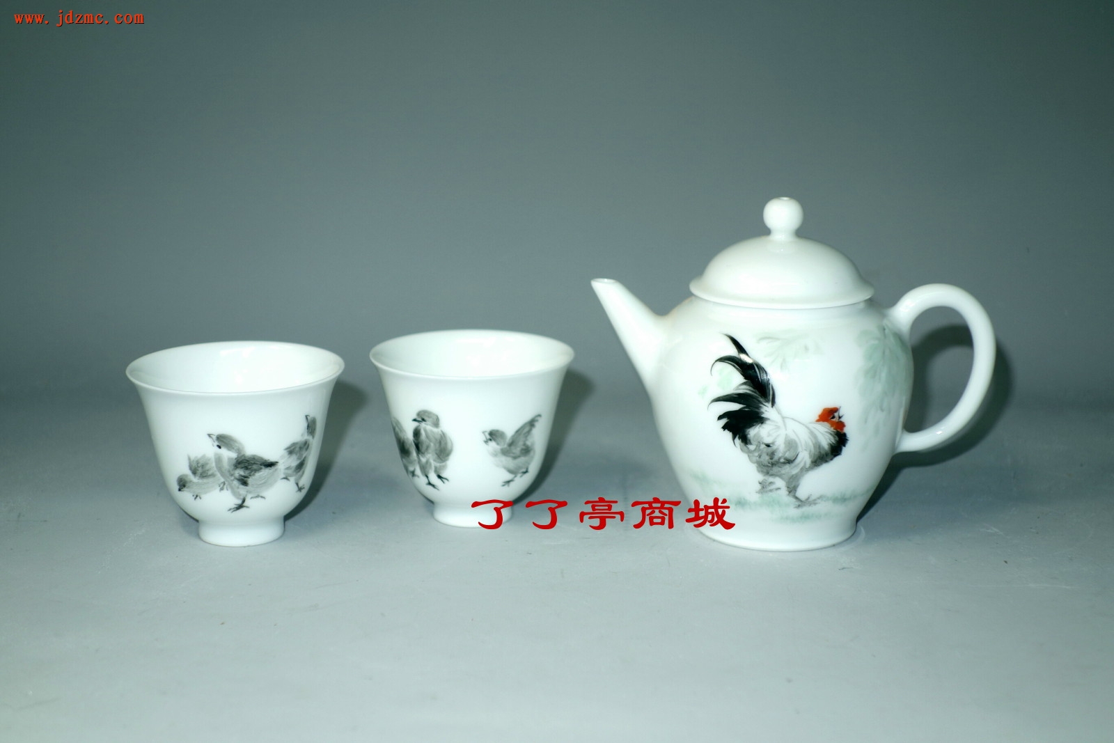 《鸡--吉.2》茶具,汪则东(高级工艺美术师,陶瓷内画家.)工作室作品
