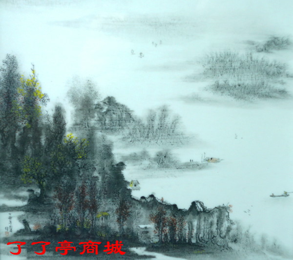 我拿他第一件作品是一块20cmx12cm的超薄瓷扳,因为我喜欢亚光瓷,建议他釆用亚光瓷板,他也很赞同。那一块瓷板画的是墨彩,江南山水、清秀、错落有致,有姿有势,很耐看,拿在手里真有点爱不释手。记得那块可爱的小瓷板在我的橱窗里只放了二天,第三天就被一个专业制作红木傢俱的朋友看见了,硬给买走了,真还有点心痛。我的朋友圈很快就认同了汪则东,购买了他精巧的小作品。汪则东认认真真地走进了市场.。我的朋友分布在大江南北,他的作品也走到东西南北。我经常向他反馈我的收藏圈内的朋友们对他作品的意见和建议,他很尊重这些宝贵的关注和爱护。
