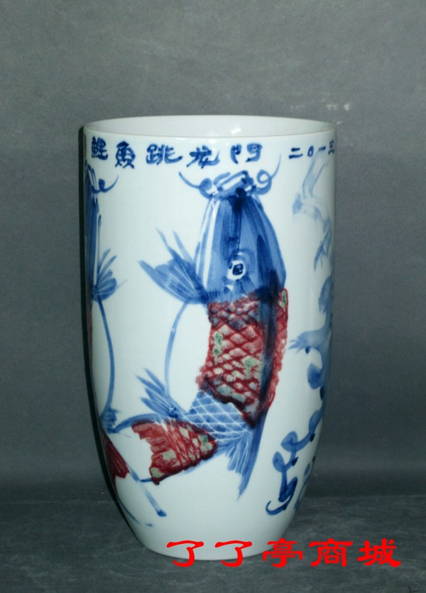 《鲤鱼跳龙门》青花釉里红.周国桢(陶瓷美术资深教授)